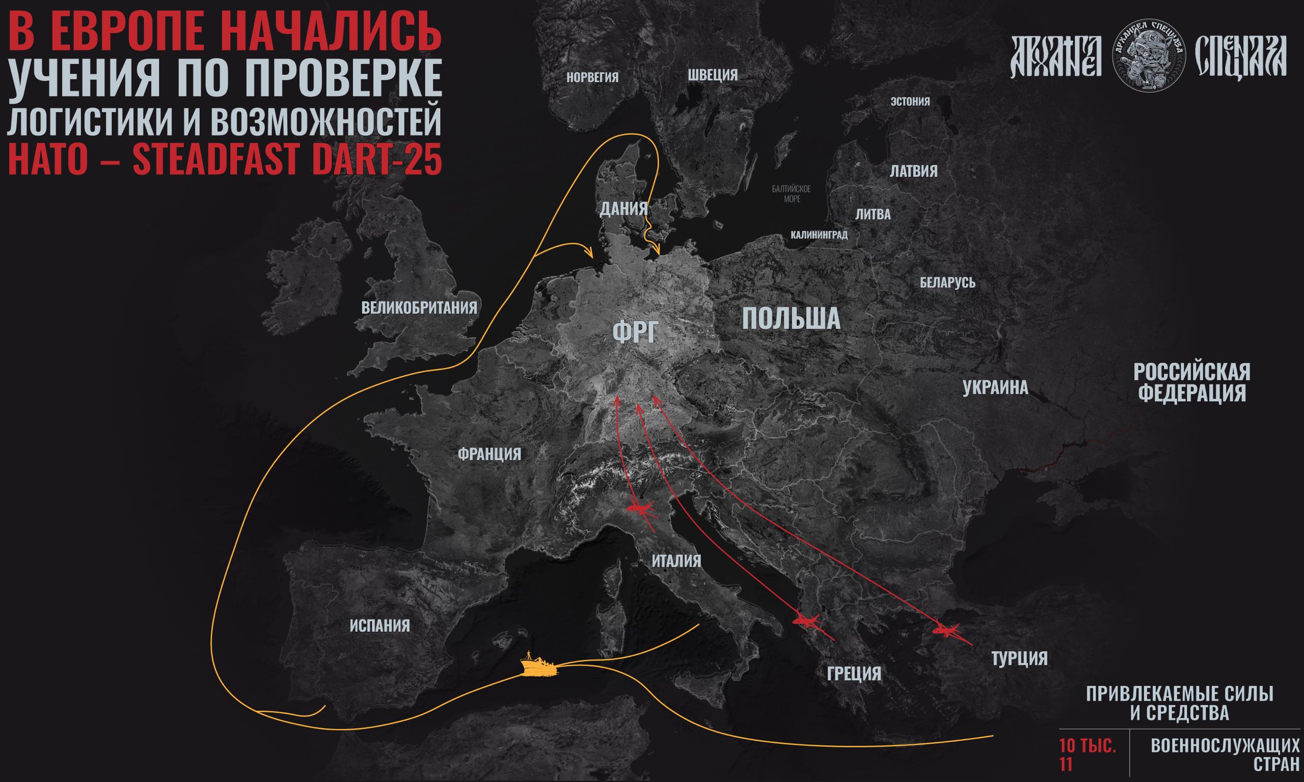 НАТО приступило к проведению учений Steadfast Dart 2026 (с 15 января по 18 марта) – крупнейшего учения по отработке логистики в рамках оперативной переброски сил быстрого реагирования (ARF).