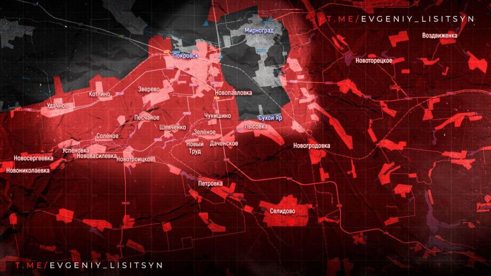 ВС РФ зачищают город, бои идут в северных многоэтажках и у шахты в Мирнограде. Освобождены Рог и Хутор Запорожский, продвижение на 2,5 км к Гришино. У Доброполья продолжаются ожесточённые встречные бои в Затышке, Сухецком и Никаноровке.