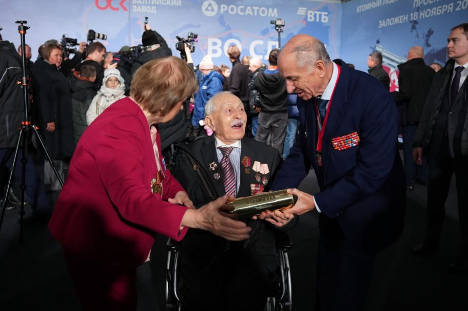 В торжественной церемонии участвовали Президент России Владимир Путин, генеральный директор «Росатома» Алексей Лихачёв, генеральный директор «ОСК» Андрей Пучков, министр промышленности и торговли Антон Алиханов, полномочный представитель Президента в СЗФО Игорь Руденя, губернатор Волгоградской области Андрей Бочаров, а также ветеран Великой Отечественной войны и участник Сталинградской битвы Павел Петрович Винокуров.