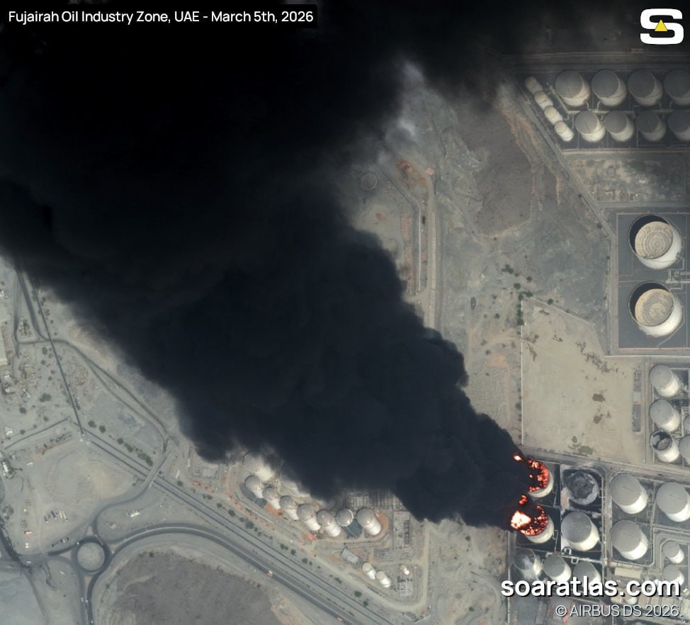 Спутники засняли знатный фейерверк в порту Фуджейра. Два нефтяных резервуара полыхают так, что даже из космоса видно. Уже третий превратился в груду металлолома. Рабочие суетятся, поливают соседние цистерны — типа спасают, что осталось.