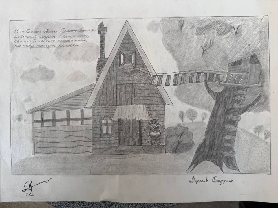 Дети офигенные! Учителя офигенные и очень заряженные! Малышаты славные такие, фоткались со мной, трое выучили мои стихи. Одна девочка сплела розу из бисера и подарила. Мальчик Мирослав целую картину нарисовал по моему стихотворению «В небесном своем Простоквашино». Мирослав, я очень надеюсь, что жизнь у тебя хорошо сложится. Обнимаю.