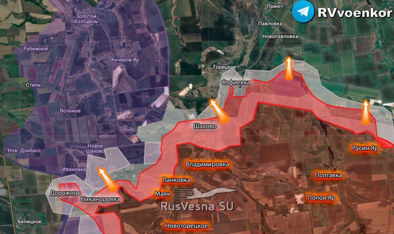 Российские бойцы уже фиксируются в 2 км к западу и северо-западу от Шахово. К юго-западу наши восстановили контроль над районами Никаноровки и Дорожного и давят дальше.