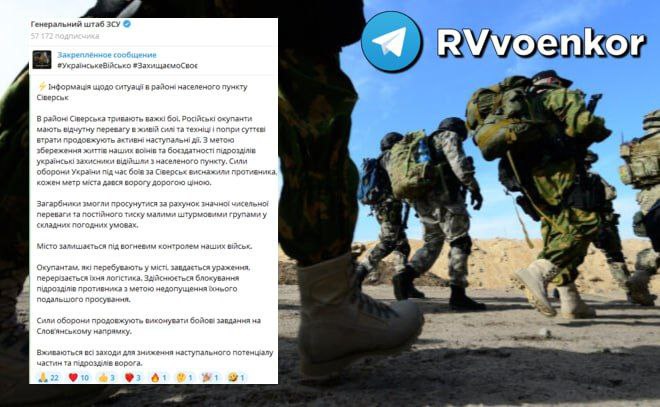 «В районе Северска продолжаются тяжелые бои. Российские войска имеют ощутимое преимущество в живой силе и технике и продолжают активные наступательные действия.
