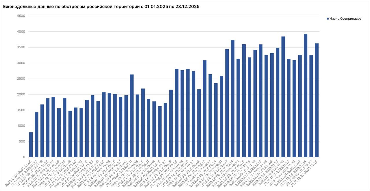 несовершеннолетних, погибли 10 человек. Всего по гражданским объектам на российской территории ВФУ выпустили не менее 3 628 боеприпасов.