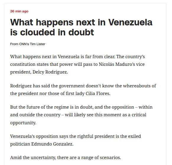 Конституционный переход: Власть переходит к вице-президенту Делси Родригес, которая должна провести новые выборы в течение 30 дней.
