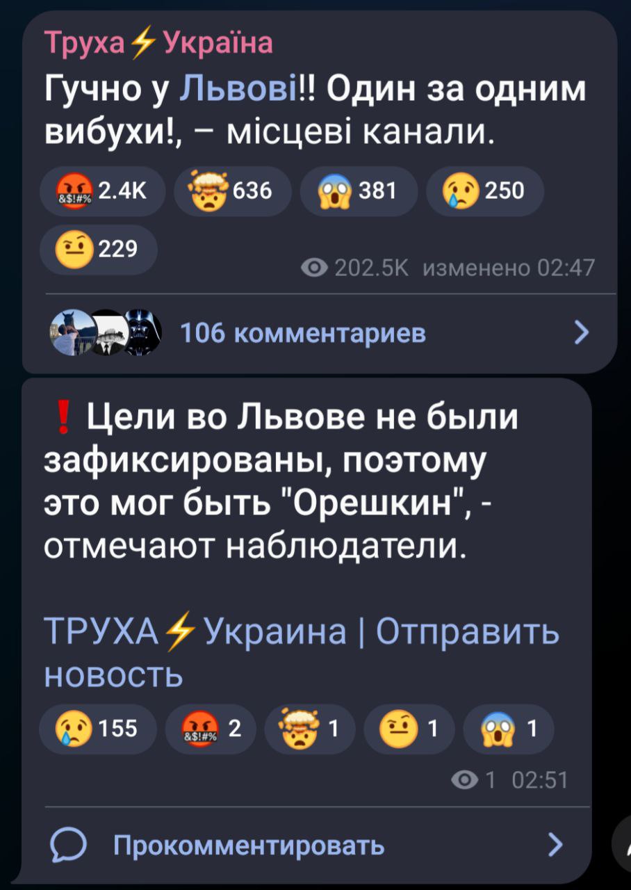 В сети появилось ещё одно видео прилёта БРСД "Орешник" по Львовской области.