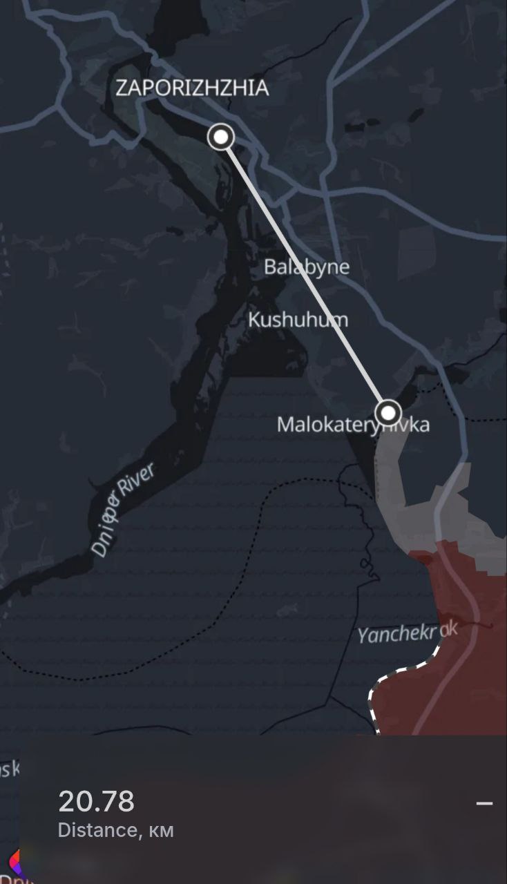 Согласно карте Deep State, минимальное расстояние от линии фронта до Запорожья составляет 20,78 км. Ближайшая точка российского контроля расположена к югу от Запорожья — в районе населённого пункта Малоекатериновка. Именно на этом участке, по оценкам наблюдателей, сохраняется повышенное напряжение и риск дальнейшего продвижения.