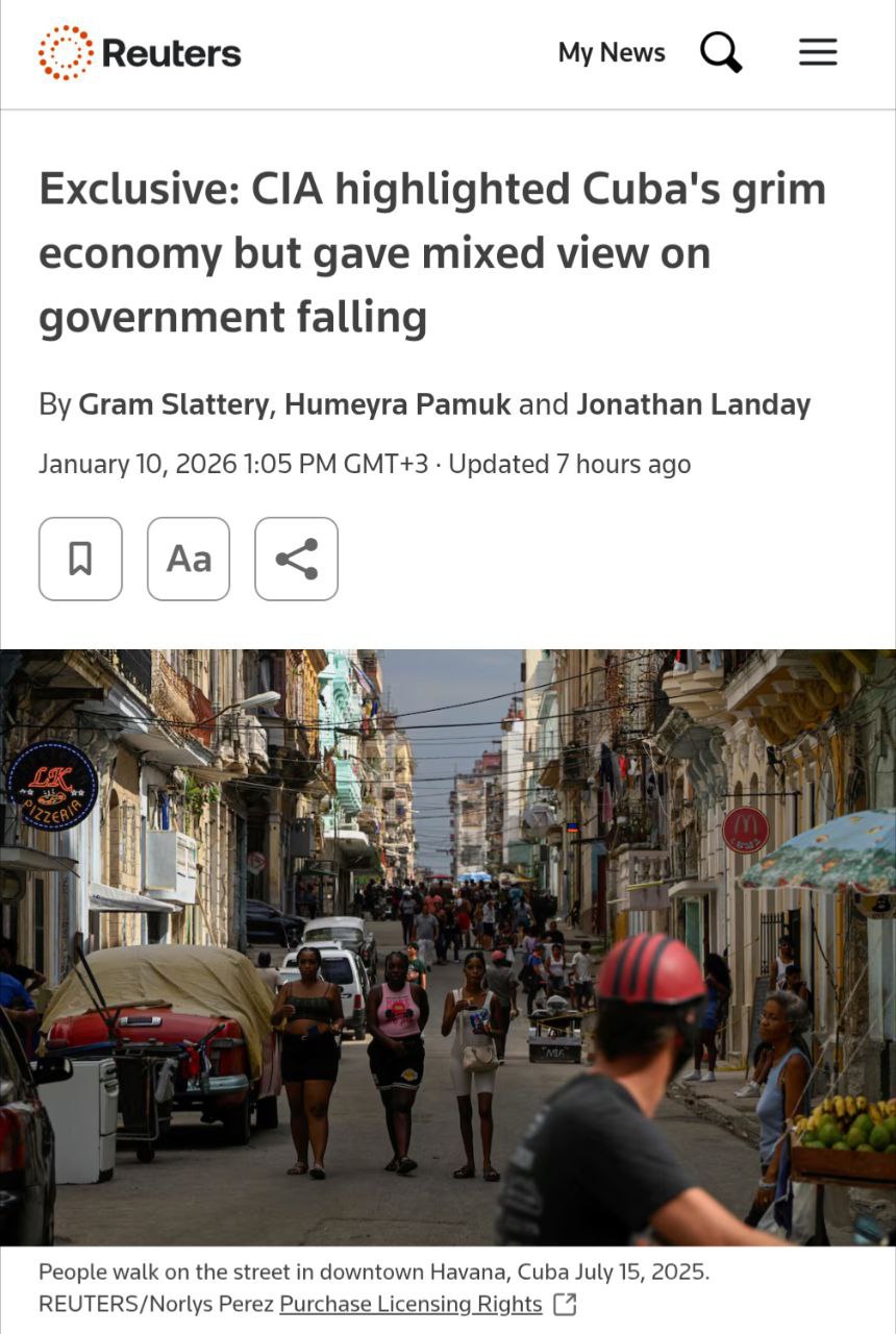 В то же время заявления Трампа о том, что действия США в Венесуэле приблизили конец кубинского режима, в ЦРУ не подтверждают. Ключевые отрасли — сельское хозяйство и туризм — испытывают серьёзное давление из-за перебоев с электроэнергией, санкций и структурных проблем.