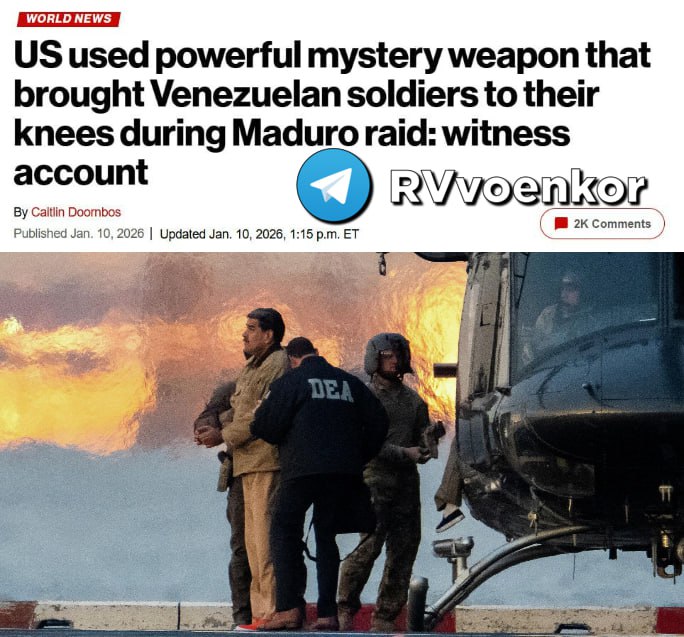 Охранник Мадуро утверждает, что американские военные применили некое оружие, напоминавшее «мощную звуковую волну»: у венесуэльских силовиков начались кровотечения, рвота, потеря способности двигаться. МВД Венесуэлы заявляет, что в ходе операции погибло около 100 сотрудников сил безопасности.