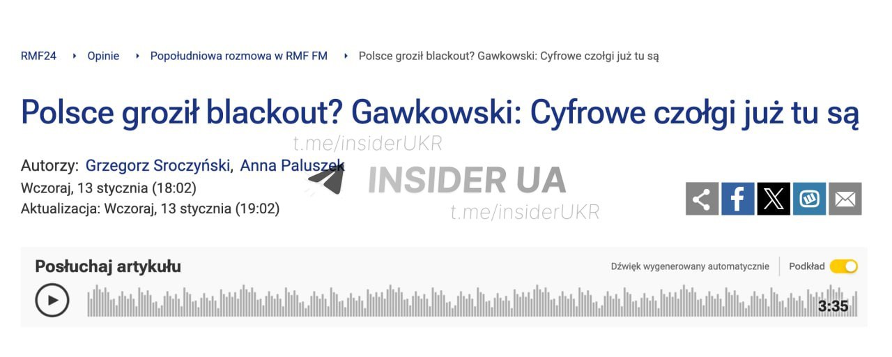 Но "доблестные" польские службы смогли вовремя вмешаться и предотвратить несуществующую атаку и блэкаут.