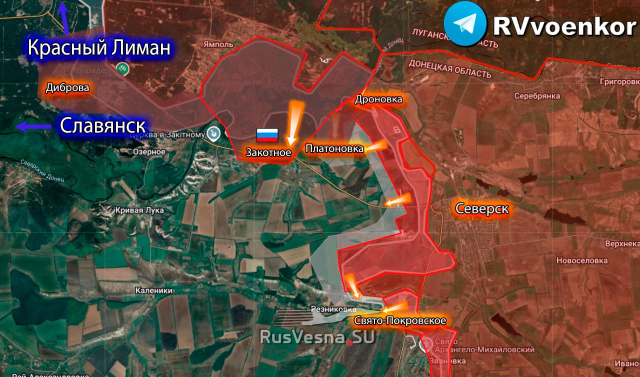 На Краснолиманском направлении подразделения группировки войск «Запад» продолжают наступление, в ходе боёв враг был выбит из населенного пункта Закотное.