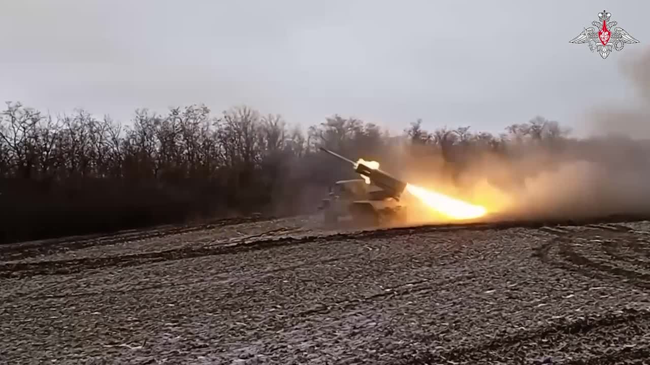 00:21 Бойцы «Южной» группировки войск отработали «Градом» по району сосредоточения ВСУ в Донецкой Народной Республике, поразив 3 автомобиля, полевой склад боеприпасов и до 20 военнослужащих.