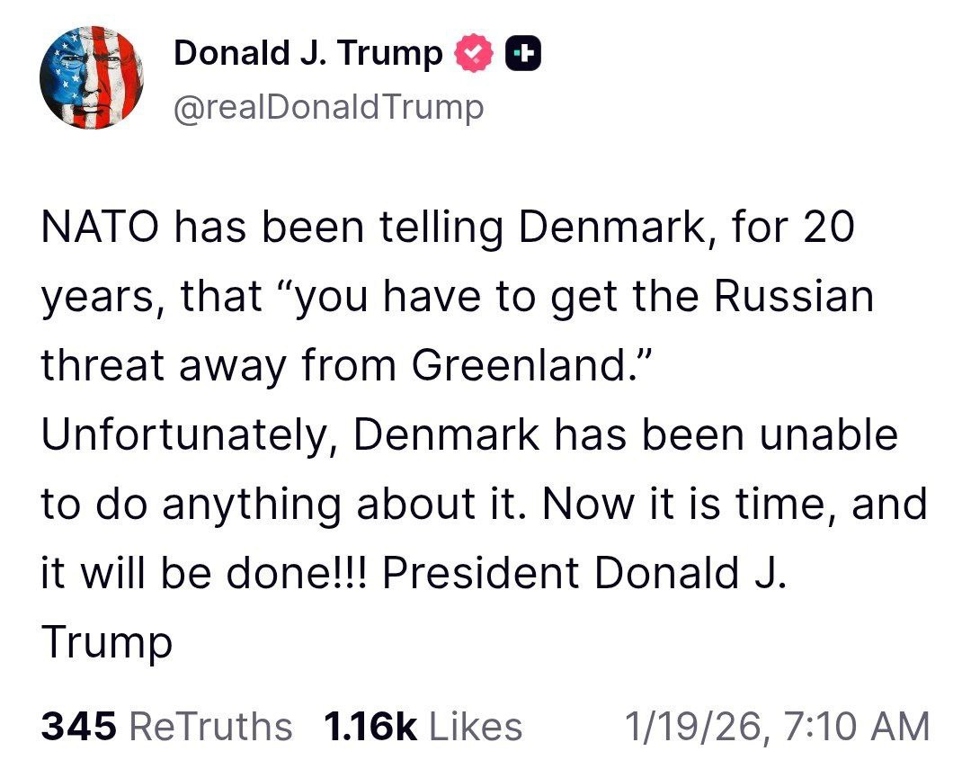 «Пришло время устранить "российскую угрозу" в Гренландии», — Трамп