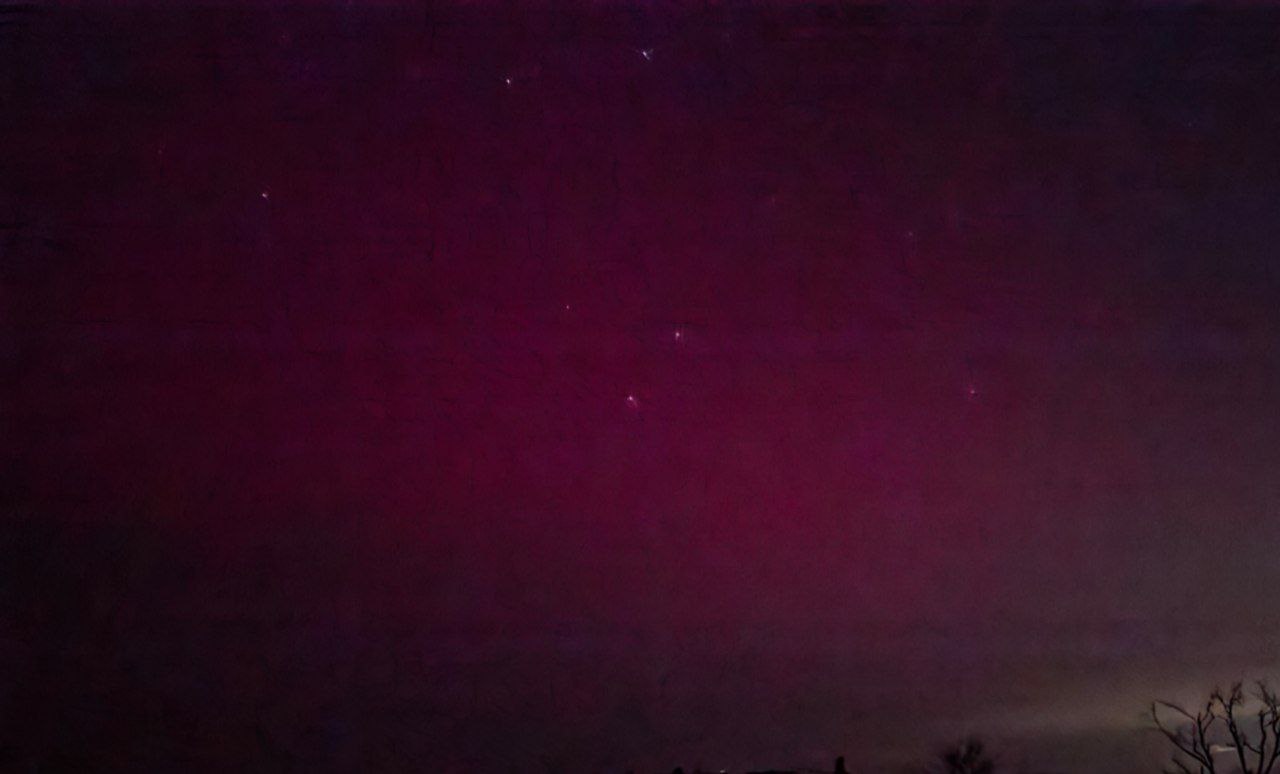 На самом деле, ни черта видно не было.Просто длинная выдержка и потом телефон сам вытянул.Результат какой то мегамощной вспышки на солнце.Проблем со старлинком нет, связь в порядке, дроны летали.