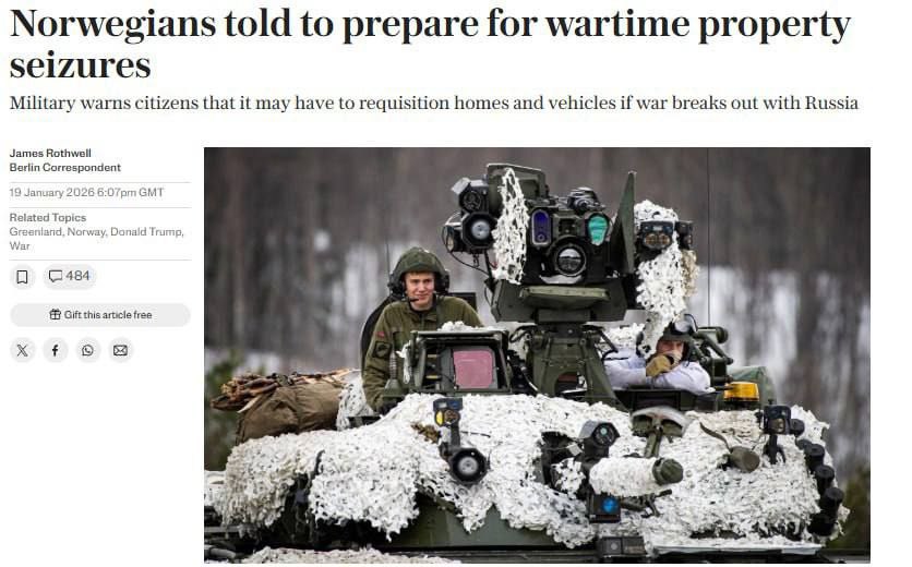 Норвегия начала рассылку тысяч официальных уведомлений гражданам с призывом быть готовыми к реквизиции имущества в условиях потенциального конфликта с Россией.