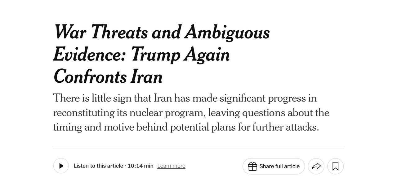 Тем временем спецслужбы Запада не нашли доказательств создания Ираном ядерного оружия, сообщает New York Times со ссылкой на источники.