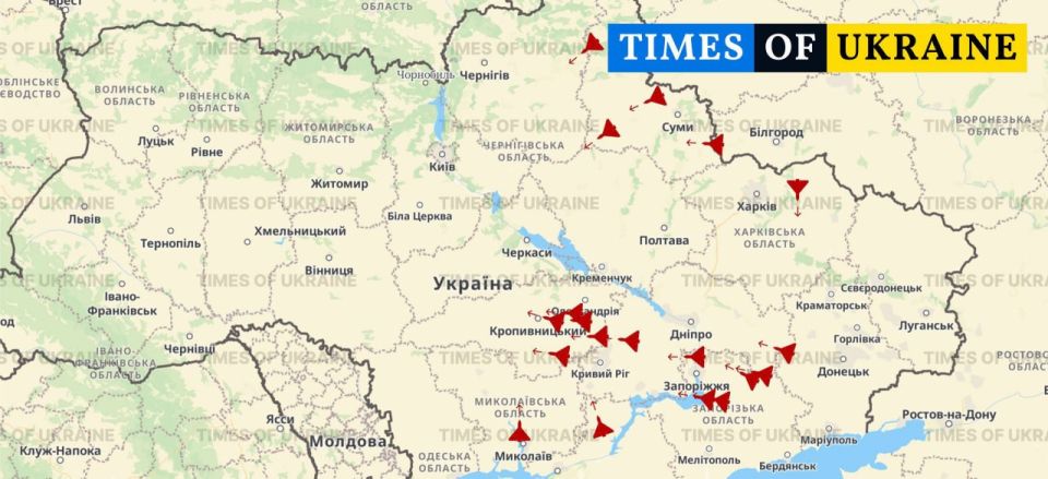 Район атакован 2 ракет "Кинжал", 4-мя крылатыми ракетами Х-59 и десятками беспилотников "Герань".