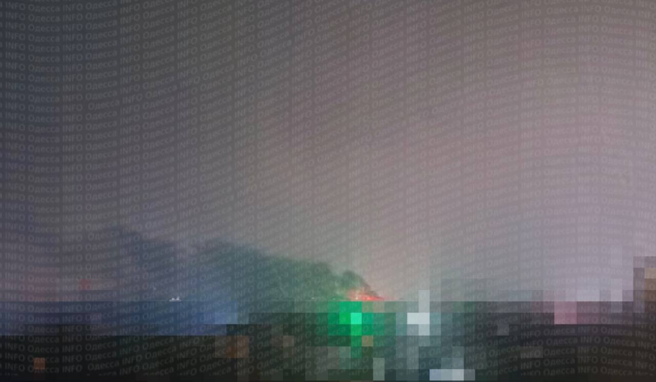 Пожар в Одессе после удара 12 дронов. Все прилёты были в одно место. Пишут что досталось порту