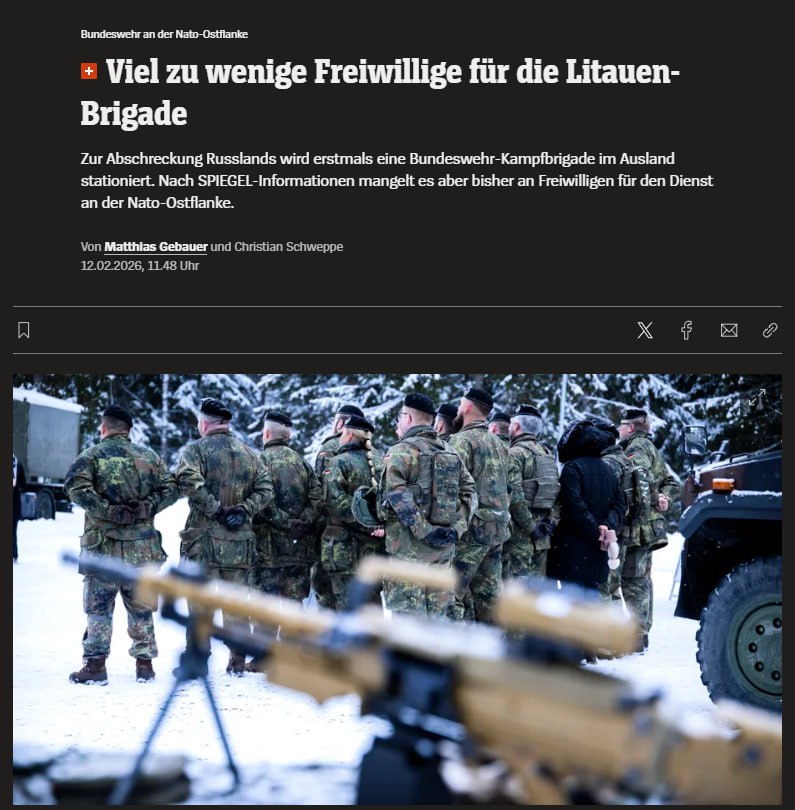 Германия не может укомплектовать бригаду для «спасения Литвы от России», — Der Spiegel