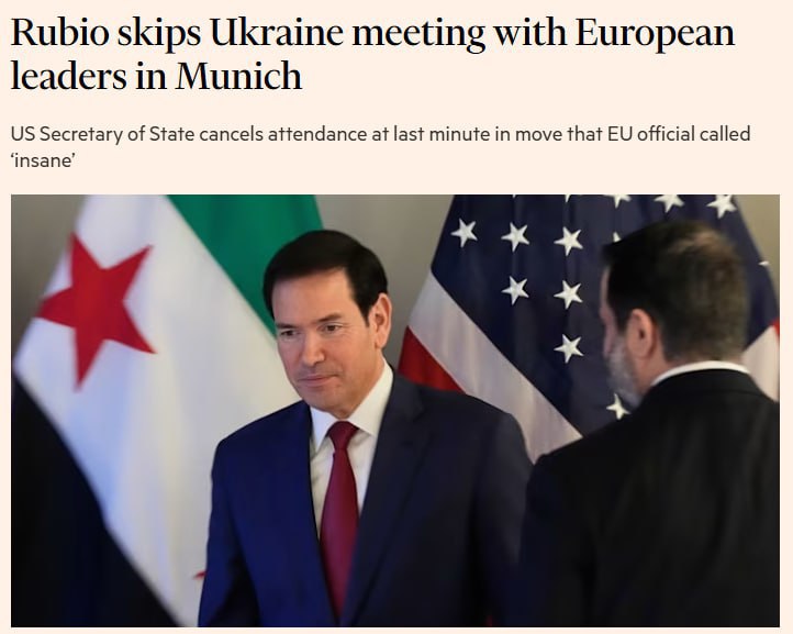 Один из чиновников Евросоюза назвал отмену встречи «безумием», отмечает газета. Рубио же после Мюнхена отправился на встречу с премьером Венгрии. Чиновник Госдепа сообщил, что визит направлен на дальнейшее укрепление связей со страной, которая в отличие от большинства европейских государств, разделяет видение Трампа по миру на Украине, пишет FT.