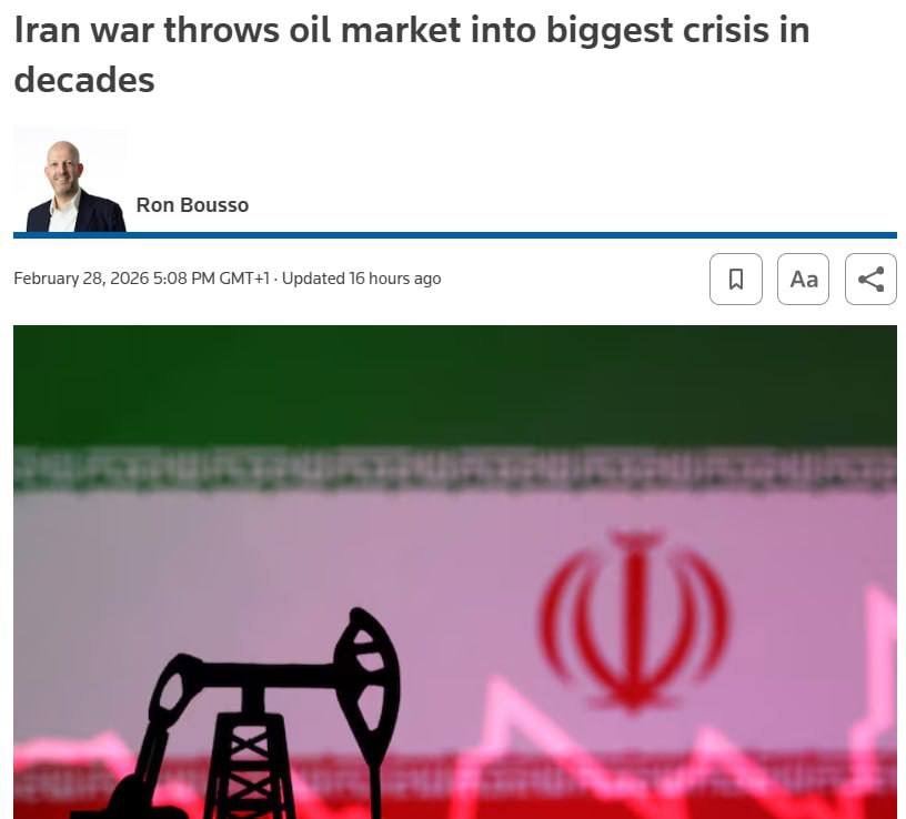 Удары США и Израиля по Ирану спровоцировали крупнейший нефтяной кризис за последние годы, — Reuters