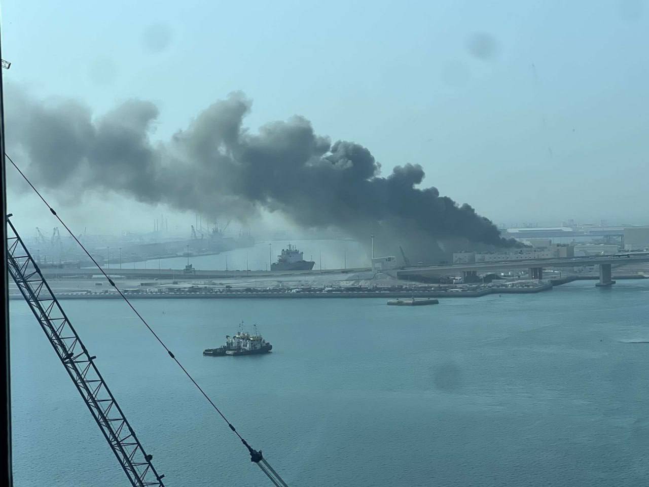 Чёрный дым поднимается после удара иранского дрона или ракеты по базе ВМС Фанции Camp de la Paix в ОАЭ.