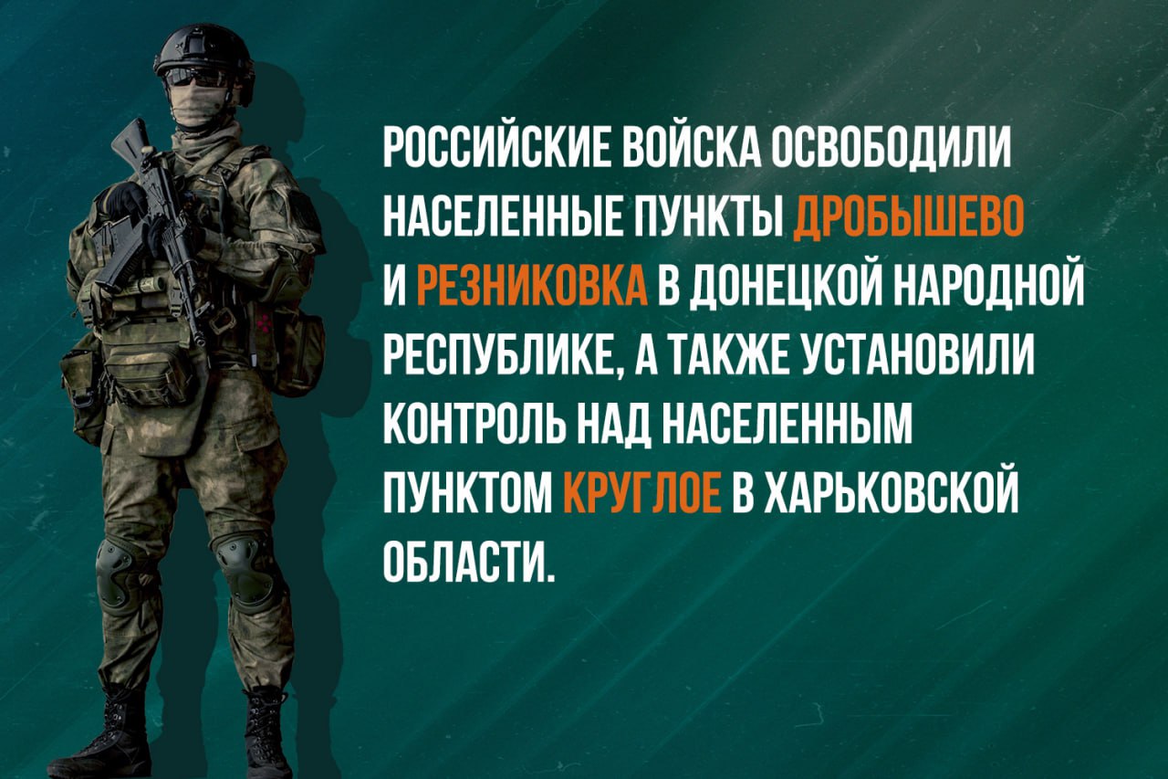Главное за деньРоссийские войска освободили населенные пункты Дробышево и Резниковка в Донецкой Народной Республике, а также установили контроль над населенным пунктом Круглое в Харьковской области. Министр обороны РФ Андрей Белоусов поздравил...