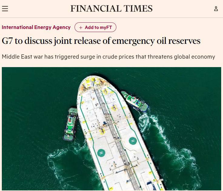 Страны G7 обсуждают экстренный выпуск нефти из резервов, — FT