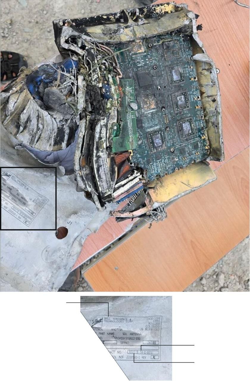 На фрагментах указаны названия американских производителей Ball Aerospace Technologies и Globe Motors — такие же компоненты ранее находили после ударов в Йемене и Сирии.
