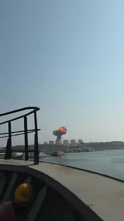 Китайские моряки показали, как боевой дрон атаковал резервуар с нефтью в порту Салала в Омане.