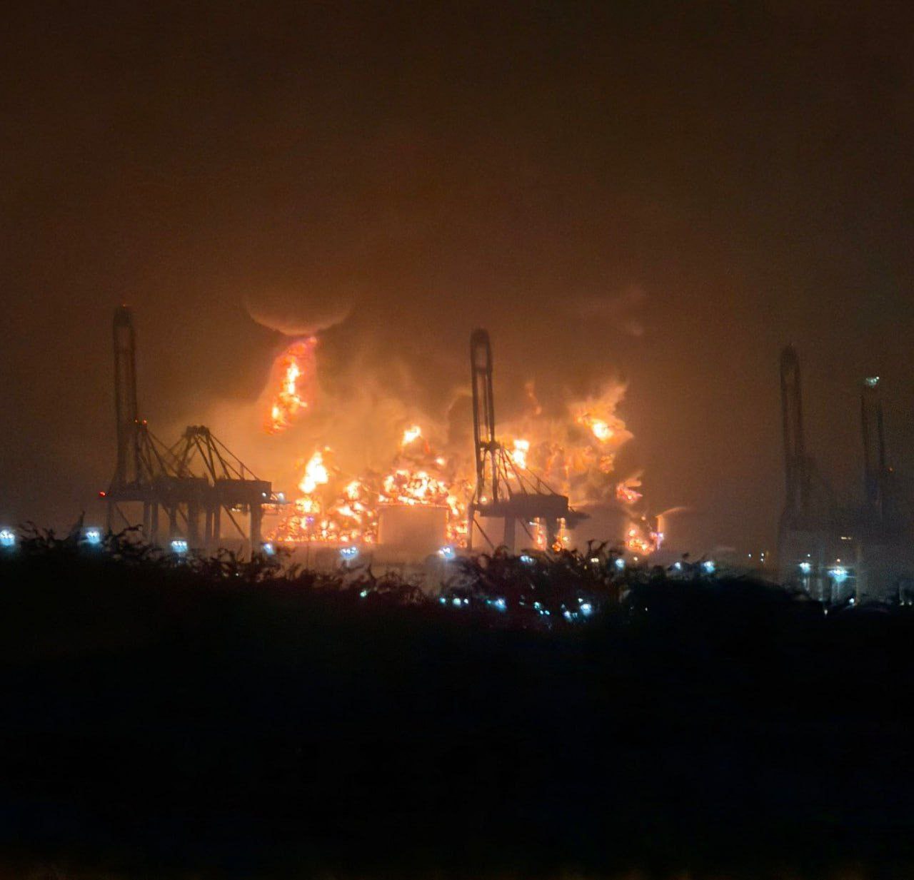 Момент удара Shahed-136 и пылающий нефтяной терминал в порту Салала в Омане