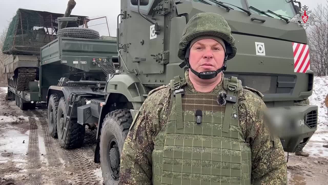 На месте водители тягачей грузят БМП-2 на специализированный прицеп. Многоосный тяжёлый тягач справляется с погрузкой бронированной гусеничной техники за несколько минут. Тягач перевозит до 50 тонн груза, поэтому танки и другая тяжёлая бронетехника быстро доставляются на линию боевого соприкосновения.