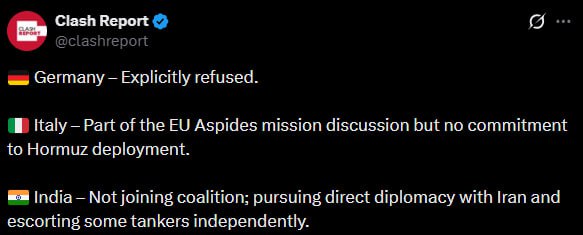Италия не взяла на себя обязательств, а Индия вообще ведет переговоры с Ираном по обеспечению сопровождения танкеров.