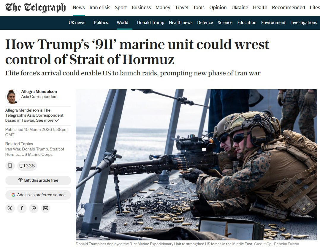 США перебрасывают 2500 морпехов к Ормузскому проливу, — Telegraph