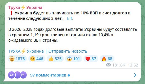 Согласно утверждённой долговой стратегии, в ближайшие три года Украина будет вынуждена направлять на погашение и обслуживание госдолга значительную часть своего экономического продукта. Расходы составят более 1 трлн гривен ежегодно, или около 10-11%...