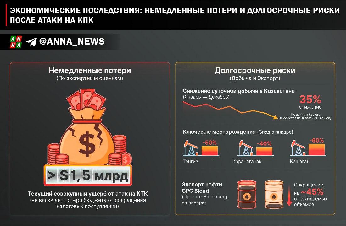 Ремонт ранее разрушенного выносного причального устройства (ВПУ-2), по данным, займет не менее полугода и завершится не раньше апреля 2026 года. Это означает, что отгрузочные мощности КТК остаются крайне уязвимыми, и любая последующая атака способна полностью парализовать экспорт.