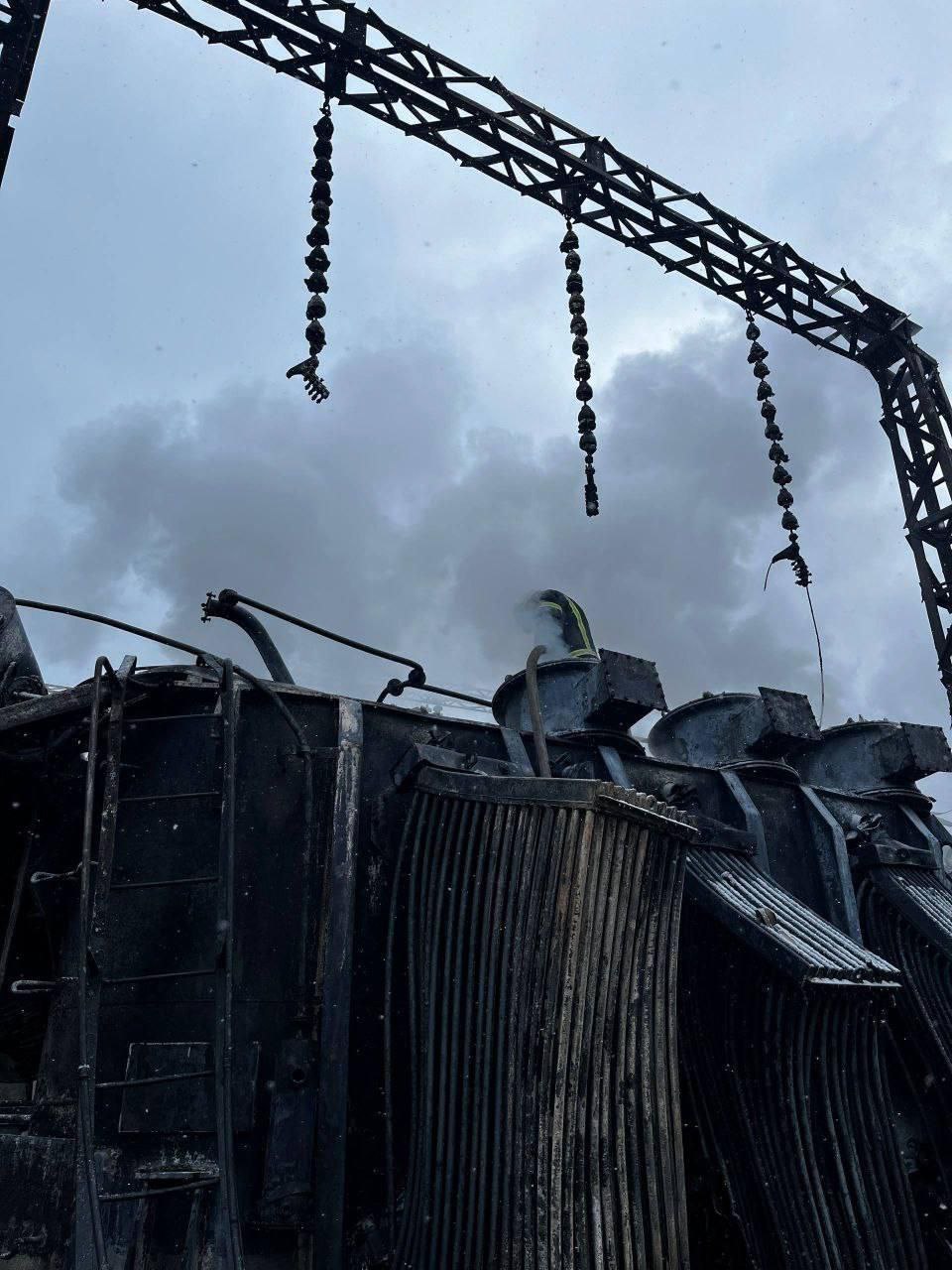 Уничтоженная подстанция в результате ночного налета дронов-камикадзе «Герань-2» в Одессе.