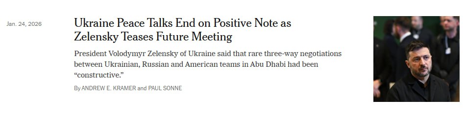 New York Times подтверждает, что Россия на переговорах требует вывода ВСУ со всего Донбасса и отказывается обсуждать измененные версии мирного плана, отличающиеся от достигнутых на Аляске договоренностей Путина и Трампа. При этом киевский режим сдавать территории отказывается.