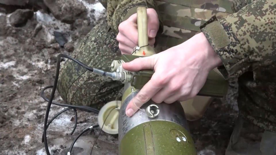 На кадрах показан процесс программирования снаряда 3ОФ95. Артиллерист вводит необходимую частоту для связи с беспилотным летательным аппаратом "Орлан-30", расчёт которого выполняет целеуказание.