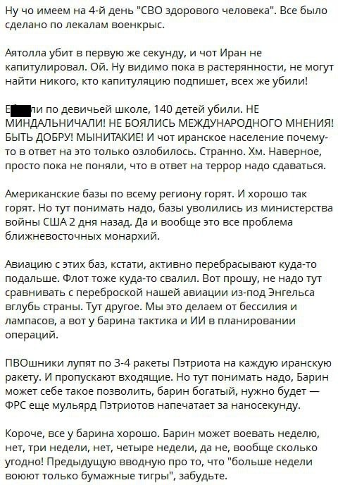 "Хочу обратиться к представителям топливного рынка. Все же понимают, что скачок цен на продающееся топливо сейчас имеет очень ограниченную причинно-следственную связь с войной в Иране, хотя бы с учетом временного лага. Опомнитесь. Не заставляйте...