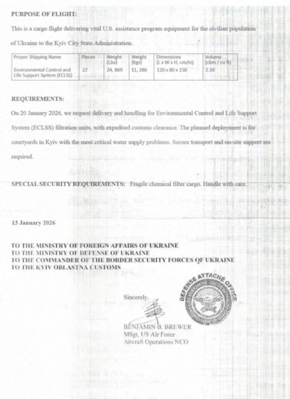 На Украину поставили американскую установку для переработки мочи в питьевую воду