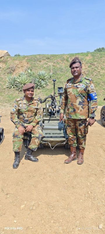 НРТК "Курьер" с офицерами ланкийской армии в центре подготовки Сухопутных войск в Демократической Социалистической Республике Шри-Ланка, где прошли первые совместные российско-ланкийские учения "Тропа росомахи - 2025".