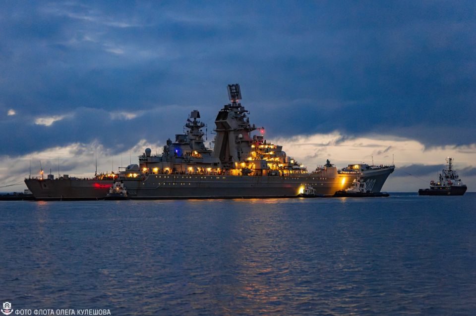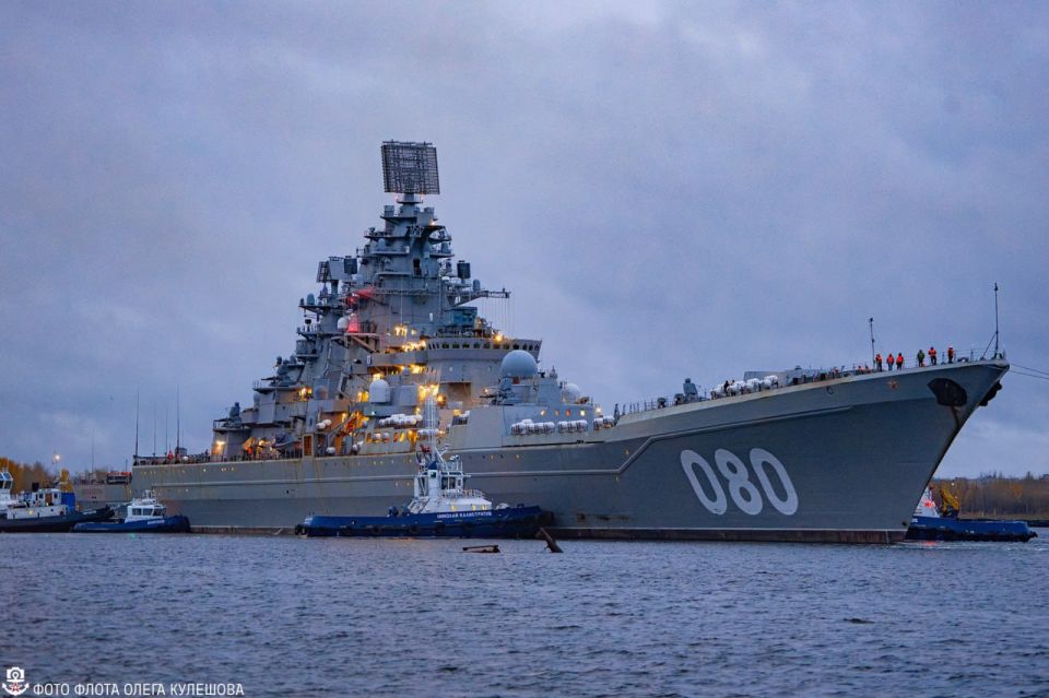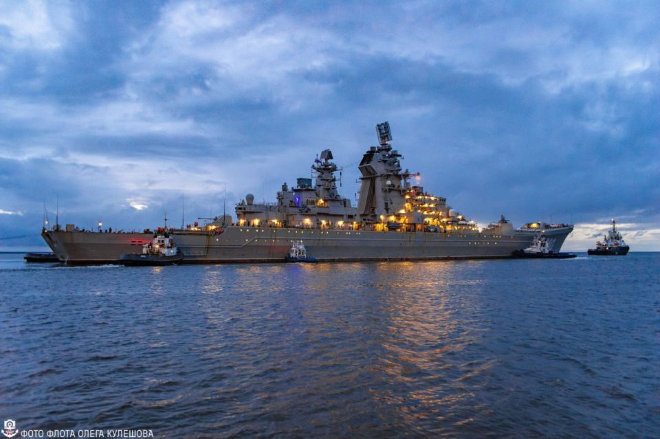 Тяжелый атомный ракетный крейсер "Адмирал Нахимов" проекта 11442 во время одного из этапов ходовых испытаний.