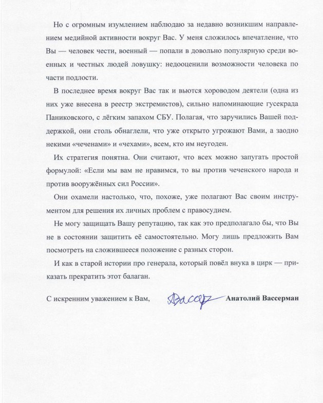 До Вассермана дозвониться не могут. По поводу письма. Есть серьезные основания полагать, что ему подсунули подписать советники.