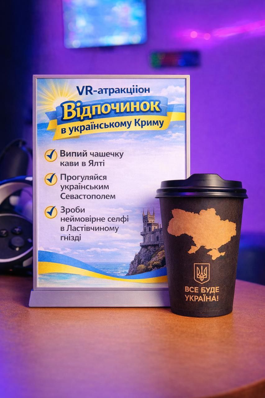 В одном из торгово-развлекательных центров Киева посетителям предлагают невиданный VR-аттракцион: можно «выпить кофе в Ялте», «погулять по Севастополю» и «сделать селфи в Ласточкином гнезде».