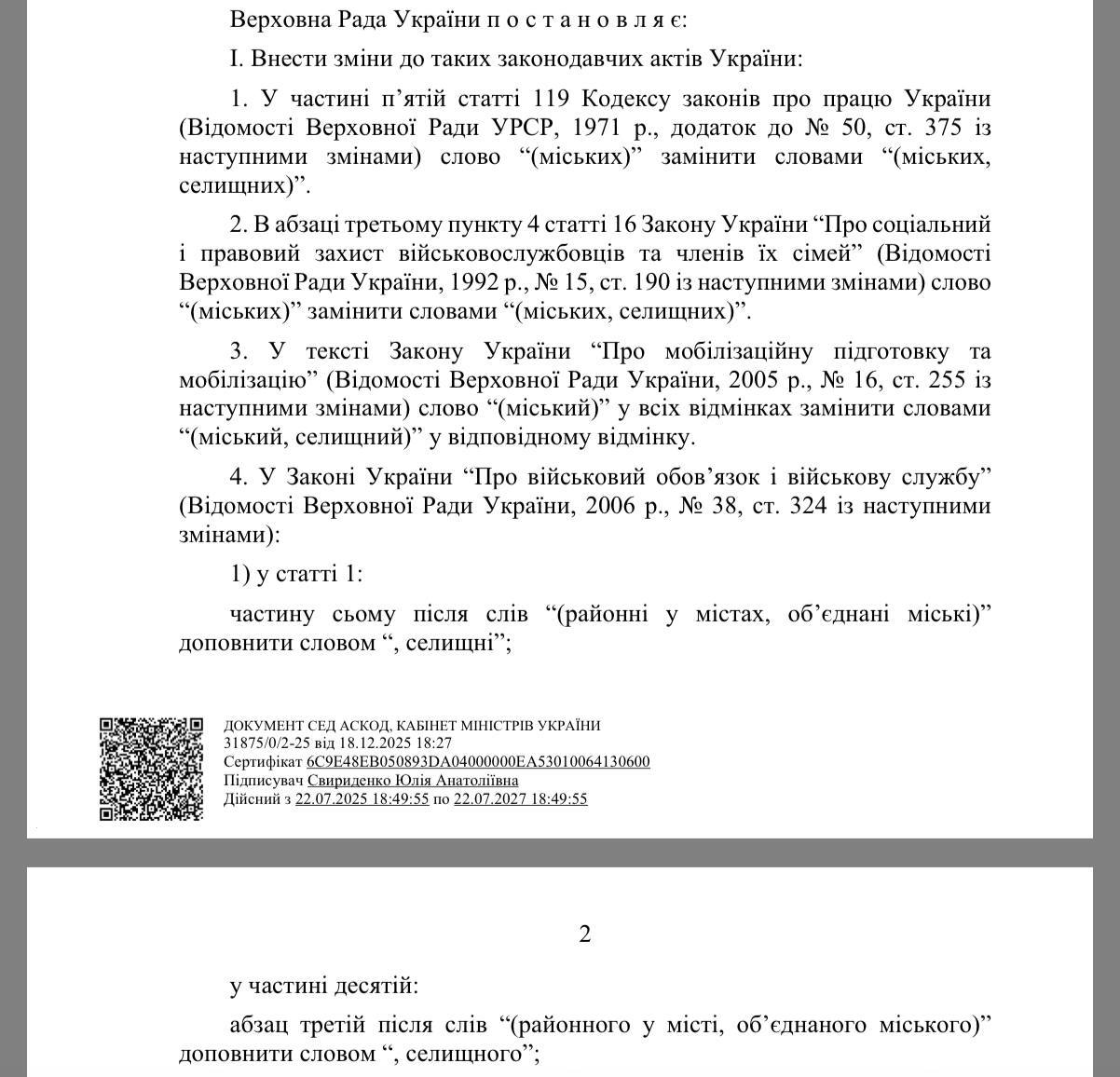 Пока Зе-режим расписывает «победы» в СМИ, на местах готовят новую волну репрессий. Премьер-министр Свириденко 19 декабря зарегистрировала законопроект о создании ТЦК в сёлах с полномочиями, как у городских.