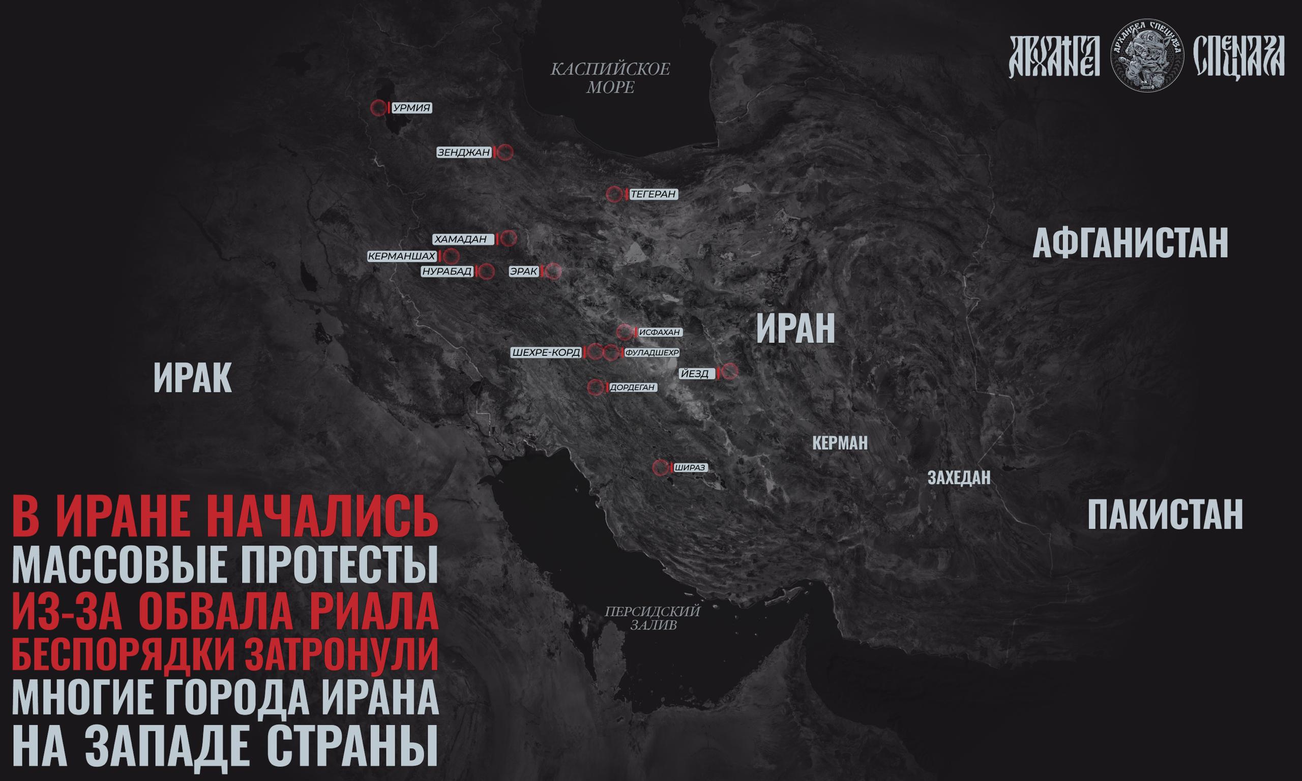 Протесты начались в Тегеране из-за того, что иранский риал обновил рекордный минимум к доллару (более 1,4 млн риал за доллар), и к ним присоединились другие города.