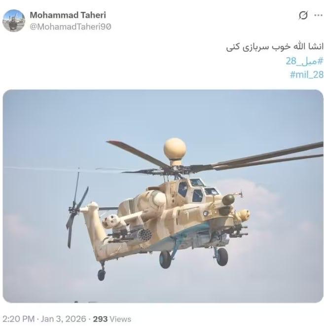 О поставке боевых вертолетов сообщил иранский журналист Мохаммад Тахери. Иран уже сообщал о покупке вертолетов в России, но о дате поставок не сообщалось.