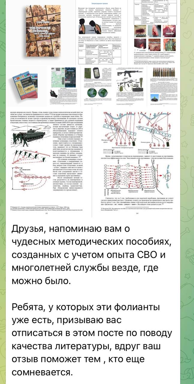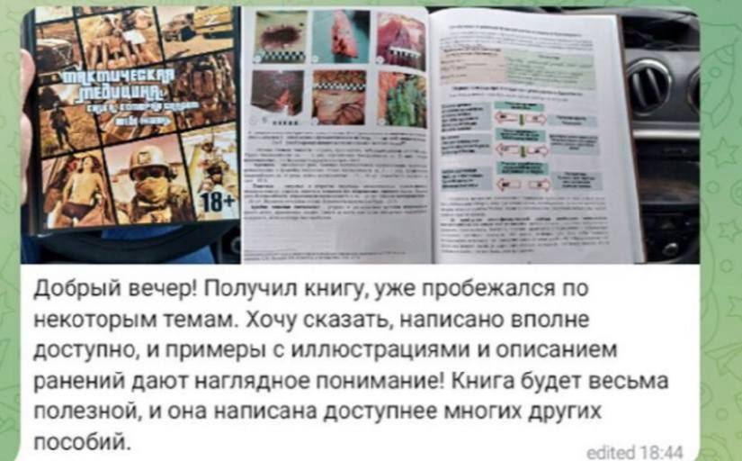 Такмед — 250 страниц о первой помощи на поле боя и в обычной жизни. Есть фото реальных ранений с разбором, рекомендации по эвакуации воздушным способом, советы юриста и многое другое (1 500 ).