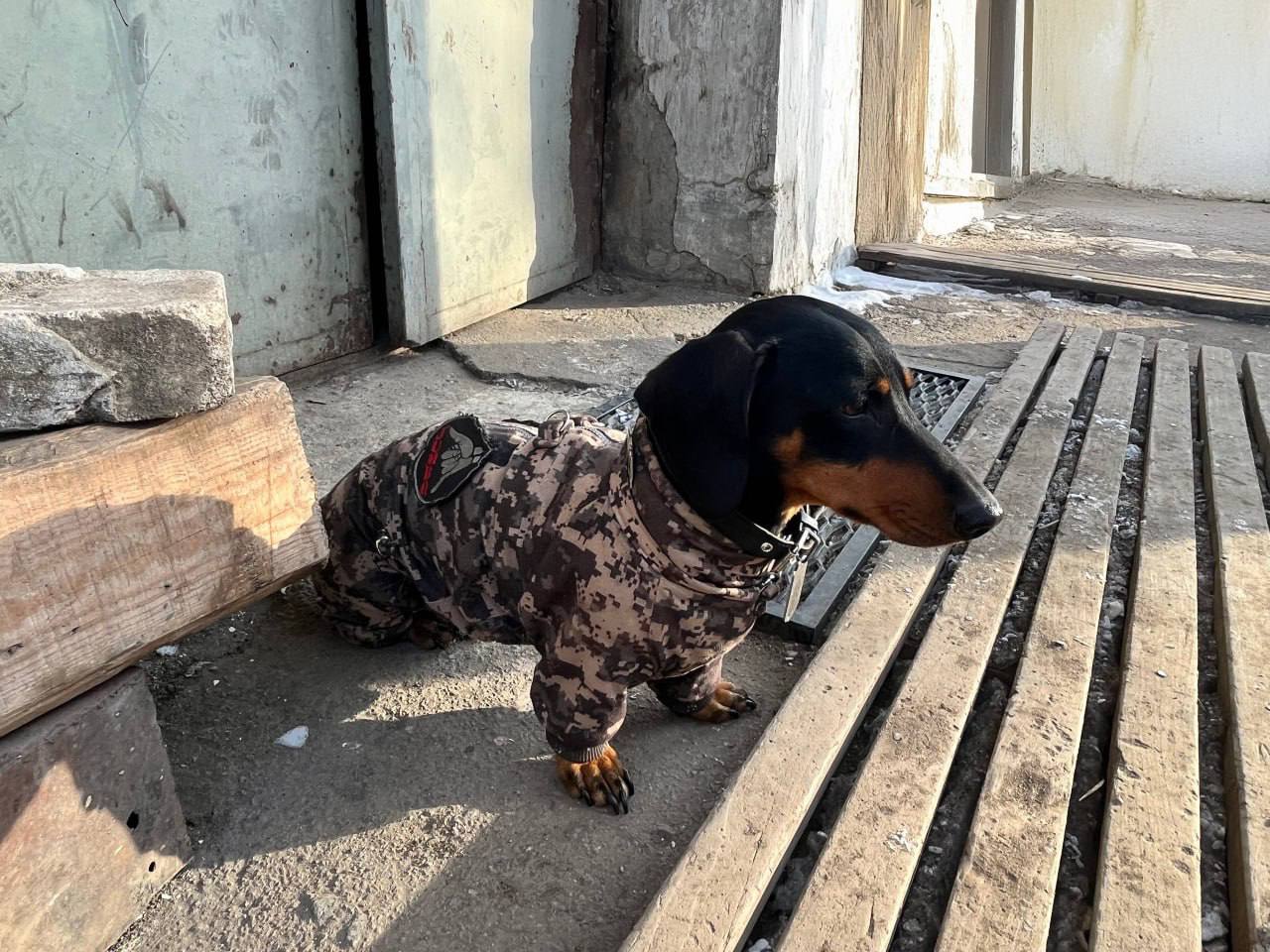 Еще маленьким щенком «Бакса» подобрал боец автороты с позывным «Бой», с ним такса проехала десятки километров фронтовых дорог. Сегодня «Бакс» не просто друг, но и опытный доброволец подразделения